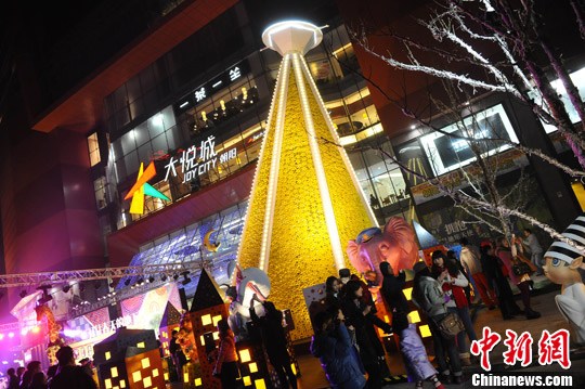 2012年11月24日晚,北京朝阳大悦城“开往春天的地铁-几米异想之旅”大型圣诞景观举行亮灯仪式,正式拉开了京城年底促销季大幕。中新社发 李学仕 摄