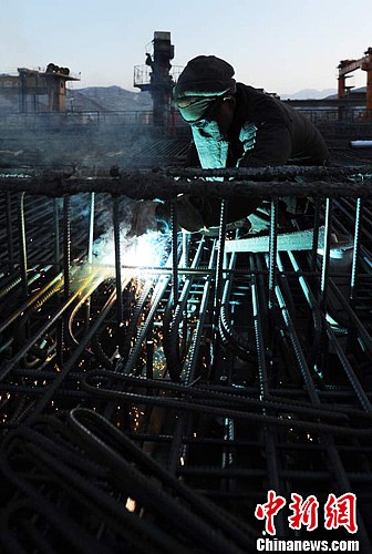 工人表情“拼”起兰新铁路第二双线湟水河特大桥