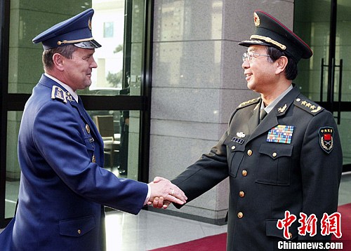 11月29日,中国人民解放军总参谋长房峰辉上将在北京八一大楼为斯洛伐克军队总参谋长彼得·沃伊泰克空军中将举行欢迎仪式。中新社发 宋吉河 摄