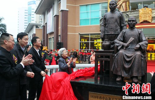《孙中山与王立夫》雕塑在孙中山故里揭幕