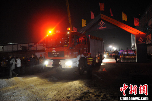 图为消防车驶出火场。中新社发 崔楠 摄