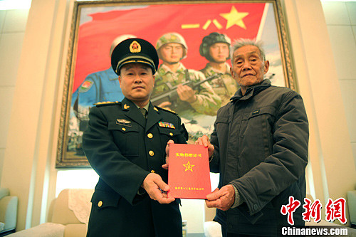 图为革命烈士后人捐出烈士证收到军史馆给他的一个实物捐赠证书。陈超 摄
