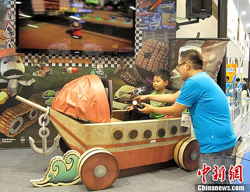 图为小朋友在工作人员指导下体验最新电脑游戏。中新社发 路梅 摄