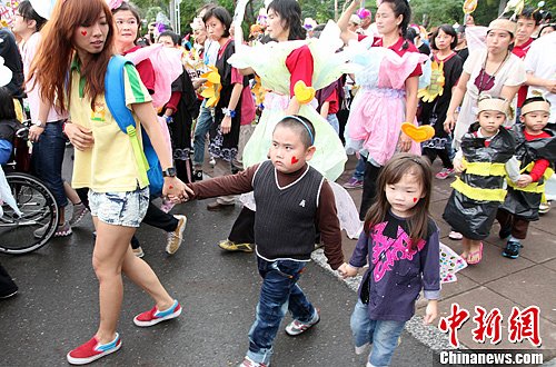 12月1日下午,国际身心障碍日前夕,高雄市举办“让‘碍’在一起——用爱挥洒精彩人生”踩街游行暨音乐嘉年华会,吸引众多公益团体和数以百计的民众参加。中新社发 董会峰 摄