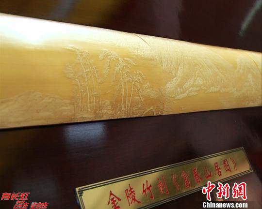 市民在金陵竹刻《富春山居图》前驻足观看 吴瞳 摄