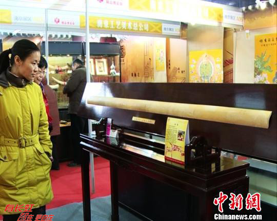 12月19日,一件长达2.3米的金陵竹刻《富春山居图》亮相2012江苏省工艺美术精品博览会,吸引了不少市民前来观赏。据了解,该作品从构思到制作完成历时两年。《富春山居图》是元朝画家黄公望的代表作品,被称为中国十大传世名画之一。