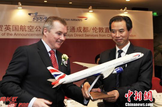 12月19日,英国航空母公司IAG集团行政总裁威利·沃尔什(WillieWalsh)在成都宣布,英国航空将于2013年9月22日开通成都-伦敦直飞航线。新航线彰显中国西部对全球经济与日俱增的重要性。