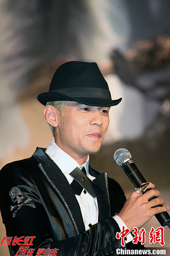 12月27日下午,台湾著名歌手、“亚洲流行天王”周杰伦身着一件有骷髅图案的深色西装、头戴牛仔帽,在台北出席《十二新作》全亚洲发片记者会。他的新专辑未上市已轰动,预购突破20万张,将于28日正式发行。中新社发 董会峰 摄