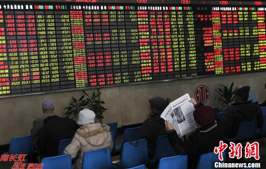 12月31日,2012年最后一个交易日,截至收盘,上证综指报收2269.13点,涨35.88点,涨幅1.61%,成交1055亿元;深成指报收9116.48点,涨89.49点,涨幅0.99%,成交912.6亿元。沪指12月累计上涨14.6%,创下2009年7月以来的最大月涨幅。中新社发 汤彦俊 摄