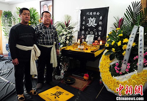 图为在家中设立的吊唁堂,供人们前来吊唁。中新社发 于海洋 摄