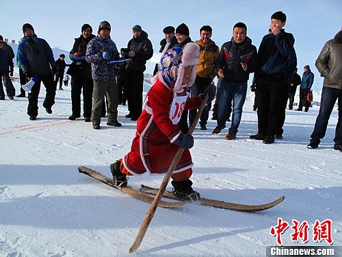 新疆阿勒泰举办古老滑雪大赛
