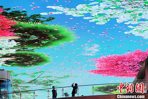 图为LED天幕吸引了众多游人参观。张远 摄