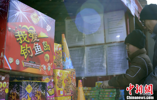 图为北京市民在销售点选购烟花爆竹。中新社发 侯宇 摄