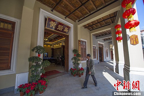 2月6日,一家名为“黄岩岛”的店铺亮相海口市水巷口骑楼老街。中新社发 骆云飞 摄