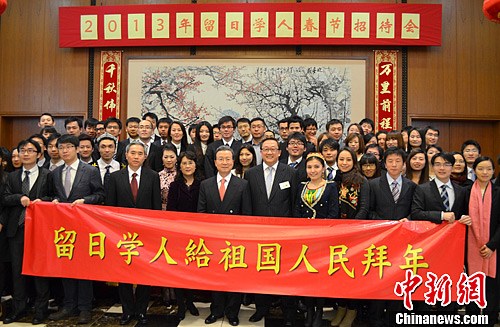 2月6日晚,中国驻日本大使馆举办“2013年留日学人春节招待会”,近300名留学生和旅日华侨华人学者欢聚一堂,载歌载舞,共庆新春。