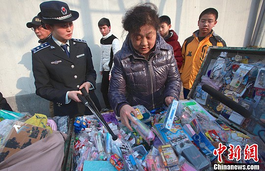 城管部门提醒学生和家长,不要购买路边无照商贩的物品,保护自身合法权益和人身安全。城管部门表示,随着学校的陆续开学,将进一步加强学校周边的环境整治,集中治理周边无照经营、非法运营、非法占道、施工扰民等问题,为学生创造良好的学习环境。中新社发 金硕 摄