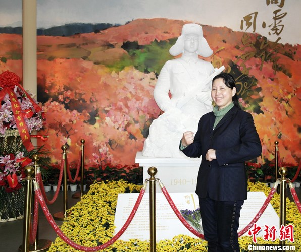 今年是“向雷锋同志学习”题词50周年,在3月5日的学雷锋纪念日当天,雷锋家乡人民纷纷前往望城雷锋纪念馆参观。图为一民众与纪念馆内的雷锋雕像合影。中新社发 唐小晴 摄