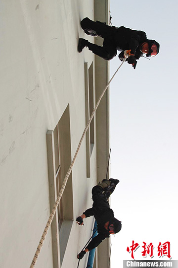 图为甘肃平凉武警进行高空索降训练。吴希会 摄
