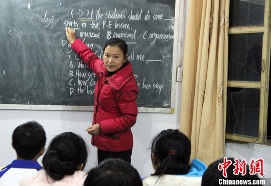 3月初,四川万源乡村教师苏瑛在教师为学生辅导功课。苏瑛25年前被分配到离家乡近百公里远的万源井溪乡任教,她分别于1998年和2009年遭遇两次车祸,痊愈后,仍然回到讲台,事迹在当地广为流传。中新社发 王永明 摄