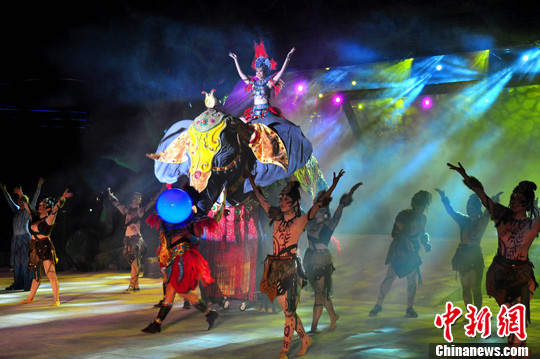 3月12日,大型超媒体奇幻景观《象山·传奇》在广西桂林市城徽象鼻山上演,拉开了“国际旅游胜地美丽桂林休闲游”主题年的序幕。中新社发 唐梦宪 摄