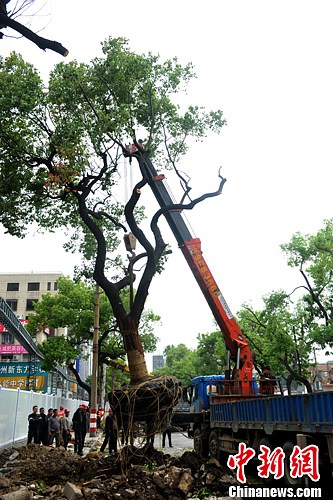 福州闹市区50年老树为地铁建设“搬家”(2)
