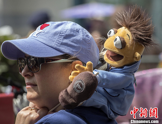 4月28日,在美国加利福尼亚州圣莫尼卡的第三街长廊,民众带来自己的木偶参加第一届洛杉矶木偶巡游。中新社发 林戈 摄