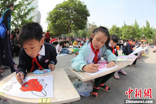 这1100多名小学生来自洛阳市20多所小学,他们在各自的画板上,以牡丹为题现场作画,成为第31届中国洛阳牡丹文化节上的一道亮丽风景。