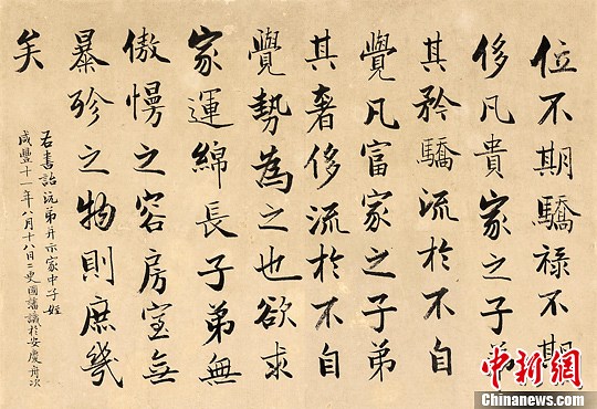 5月10日,曾国藩手书家训在2013年中国嘉德春季拍卖会拍卖时引起场下十几轮竞价,最终以230万元成交。中新社发 杨可佳 摄
