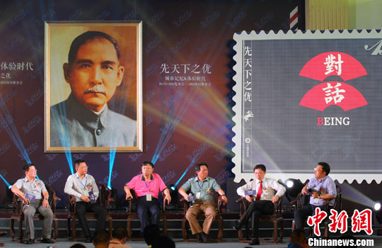 5月23日,一场以探讨民国文化和商业融合发展为主题的论坛在南京“总统府”内举行。图为嘉宾们在论坛现场畅谈。中新社发 泱波 摄