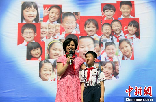 5月27日,央视主持人鞠萍来到重庆马家堡小学与孩子们共庆“六一儿童节”。中新社发 杨阳 摄