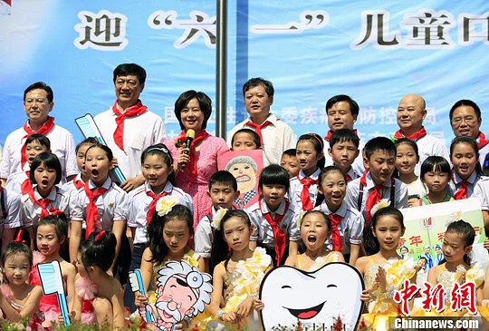 5月27日,央视主持人鞠萍来到重庆马家堡小学与孩子们共庆“六一儿童节”。中新社发 杨阳 摄
