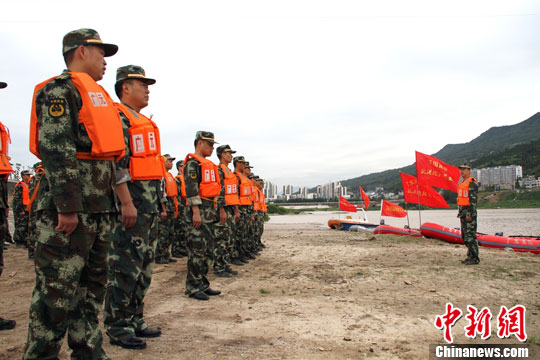5月30日,四川广元消防部队针对即将来临的汛期以及辖区河流众多,水域纵横交错的实际,开展防汛救援应急救演练,熟练掌握器材装备操作方法以及水上救援基本技能,提高消防官兵抢险救援应对能力。中新社发