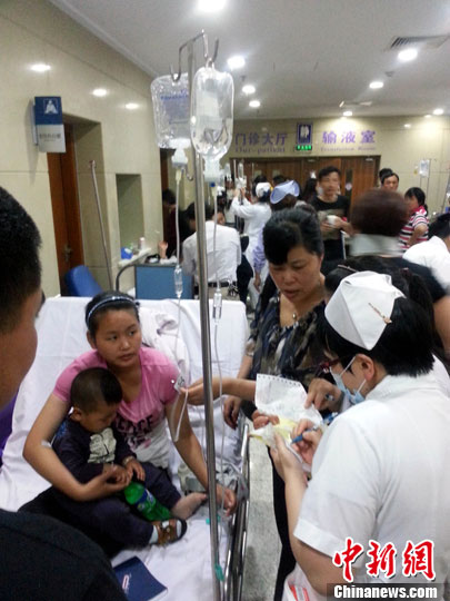 5月31日,浙江宁波一家工厂的140余名职工及家属疑似食物中毒,其中包括数十名儿童。中新社发 何蒋勇 摄