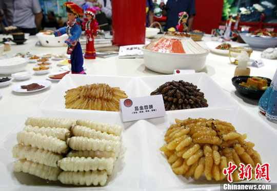 5月31日,一份名为“昆虫四拼”的特色菜亮相第二届京交会,据悉,云南一带自古食虫,“昆虫宴”是当地的一类传统食物。中新社发 李慧思 摄