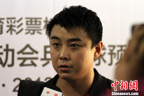 图为赛后王皓接受媒体采访。姜涛 摄