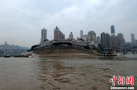 6月5日, 长江重庆段水位上涨迅速,长江进入丰水期。最近由于长江流域地区连日降雨,水位快速上涨。三峡水库继续加大下泄流量腾库防汛,中下游沿江各地水位普遍上涨。图为长江重庆朝天门段水位上涨。中新社发 陈超 摄