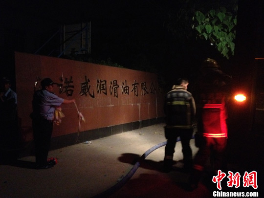 6月8日,济南一家具厂租用润滑油企业厂房起火,让人误为润滑油企业火灾。中新社发 梁犇 摄