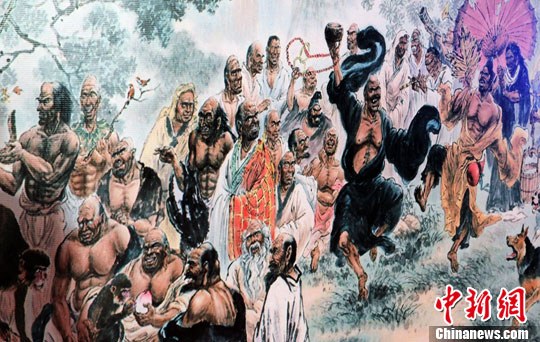 图为野石手指画《大同世界》局部。中新社发 钱兴强 摄