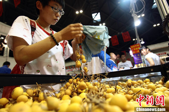 图为一家展商带着大量的手捻葫芦在此销售,吸引了市民争相围观选购。手捻葫芦是适合在手中把玩的葫芦,为手把件的一种,可以活动手指和手掌上的神经,肌肉。起到按摩穴位,达到健身养生的功效。中新社发 张云 摄