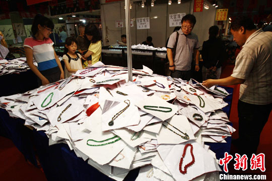 图为大批珠宝玉石堆成“小山”在此售卖。中新社发 张云 摄