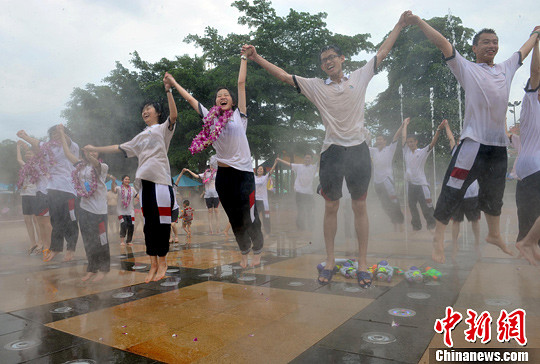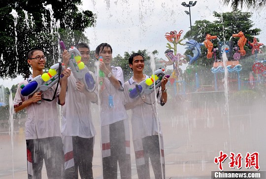 广州高考生考后狂欢“玩水派对”宣泄减压