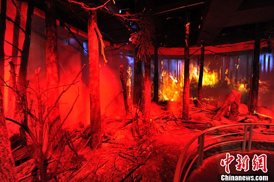 6月9日,森林博物馆内4D的火灾模拟场。中新社发 胡迪 摄