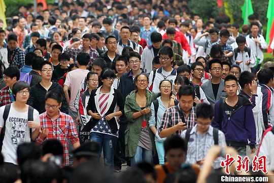 6月9日下午,大批考生从南京一处高考考点内轻松走出。中新社发 泱波 摄