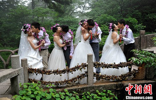 当日,第二届中国青年黄山集体婚礼在黄山风景区上演,自北京市、广东省、湖南省、河北省和安徽省等10省份27个市的20对新人在此许下爱的誓言。