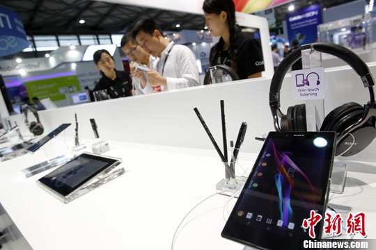 6月27日,2013年亚洲移动通信博览会正在上海举行。本届博览会以“连动未来”为主题,吸引了世界各地的众多商家参展。中新社发 汤彦俊 摄