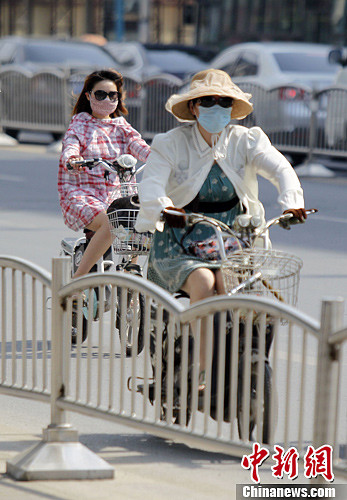 河南郑州骄阳似火 女士蒙面出行