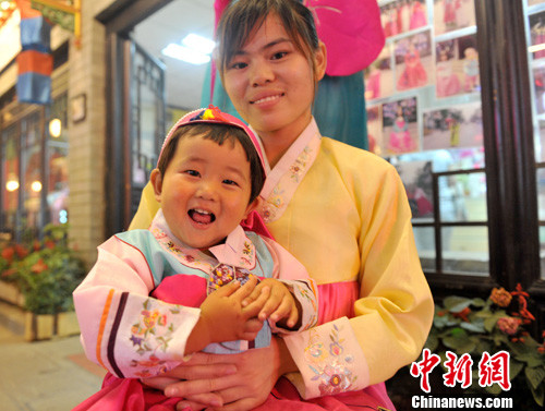 河北“韩国女人街”上两岁女童扮《大长今》赵贞恩