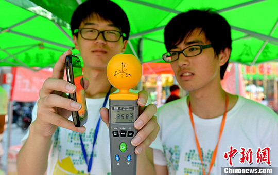 7月14日,安徽省首家“科学商店”在蜀山经济开发区落户,店员正在为顾客介绍手机辐射检测器。中新社发 韩苏原 摄