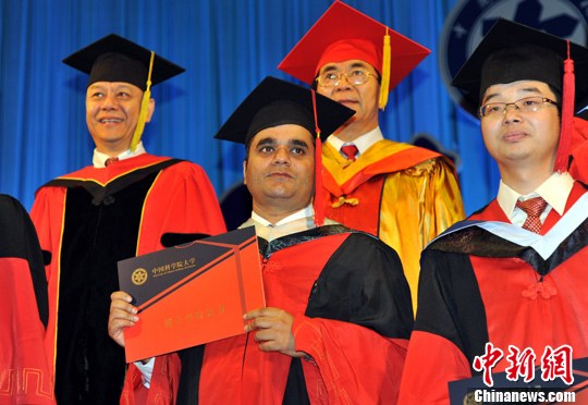 图为尼日利亚留学生海信斯获授学位后留影。中新社发 孙自法 摄