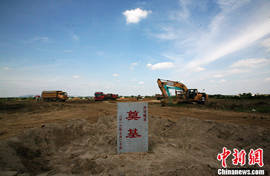 7月25日,有着世界第一高楼之称的“天空城市”施工现场,大型土方运载车来回穿梭。中新社发 李俊杰 摄